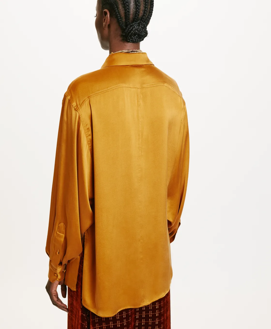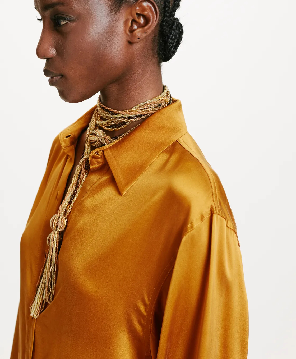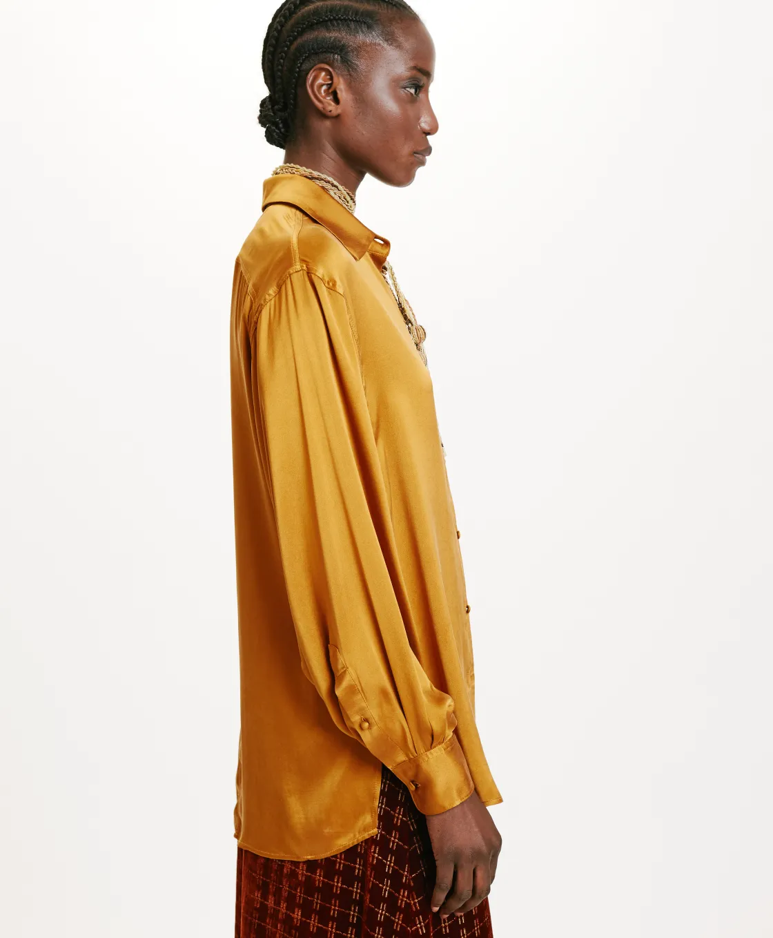 Momoni Chemises Et Blouses*CHEMISIER AKEMI EN SOIE SANDWASHED UNIE – Moutarde
