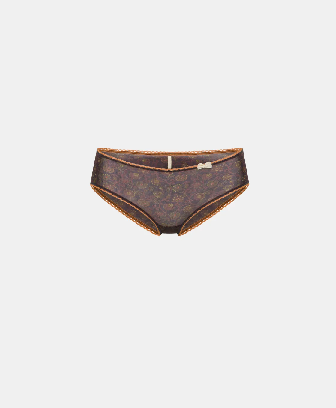 Slip intemporel modèle culotte réalisé en douce charmeuse stretch dans les imprimés exclusifs Momonì. Orné de pass…