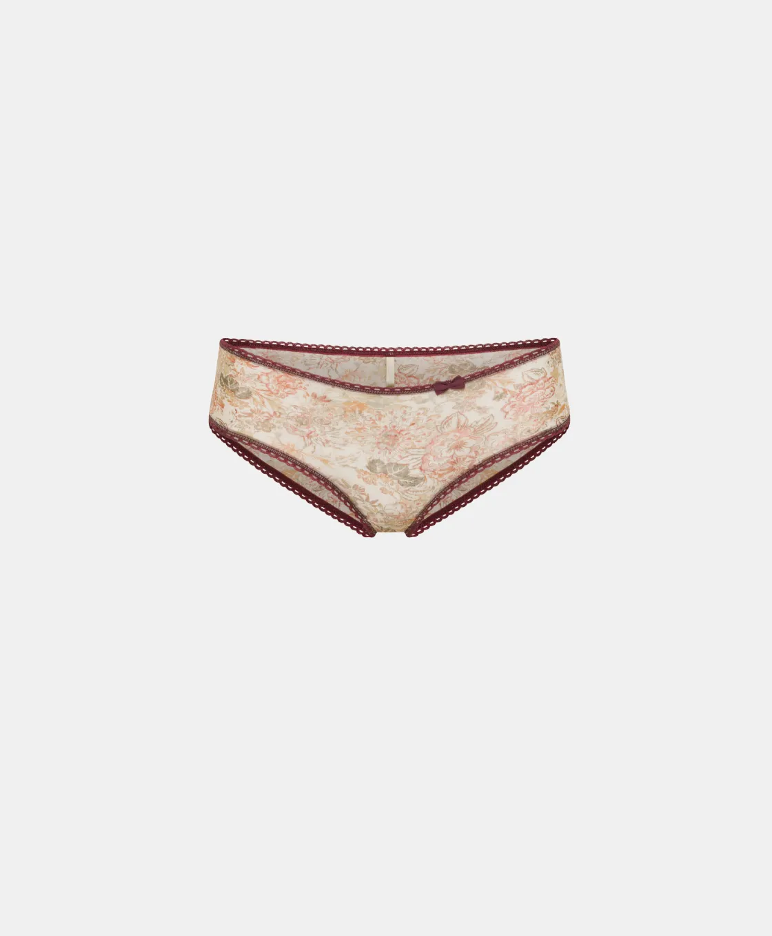Slip intemporel modèle culotte réalisé en douce charmeuse stretch dans les imprimés exclusifs Momonì. Orné de passementeries élastiques et d’un nœud en contraste de couleur. Made in Italy.