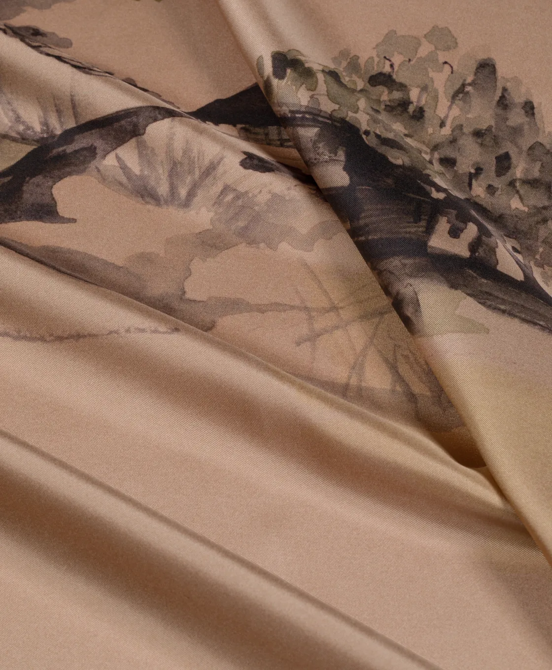Foulard en pur sergé de soie avec des imprimés exclusifs placés.
