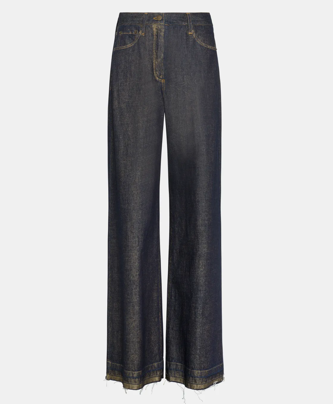 Momoni Pantalons*PANTALON AOKI EN DENIM LAMINÉ – Bleu/Or