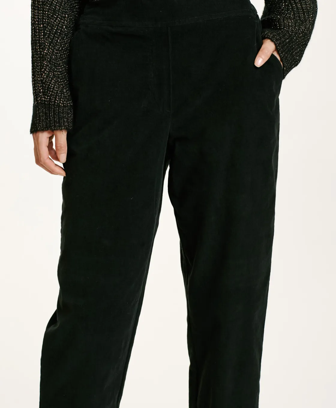Pantalon à la coupe régulière en côtelé de velours de coton stretch. Yoko présente une sangle élastique dans le dos et sur les hanches, et est lisse sur le devant. Poches françaises et bas retourné.