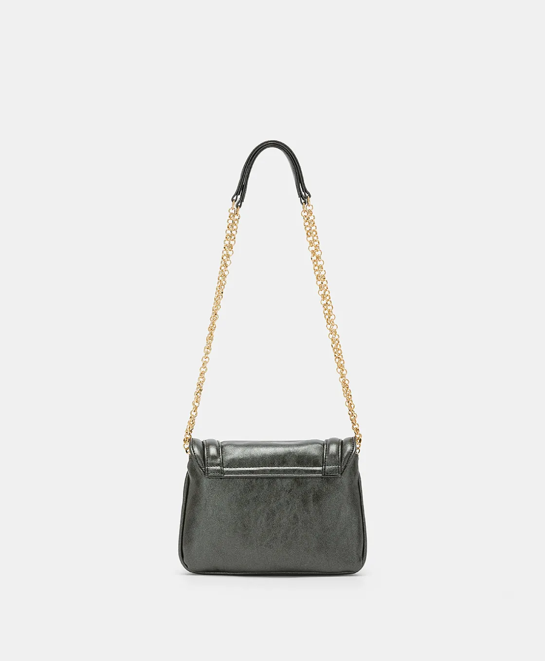 Mimì, la « petite » de la ligne Flore, est une pochette raffinée présentée dans une nouvelle version avec deux soufflets en faux cuir laminé. Rabat avec mors Momonì doré distinctif, bandoulière réglable en chaîne avec épaulière, poches intérieures zippées et boutonnées. Made in Italy.