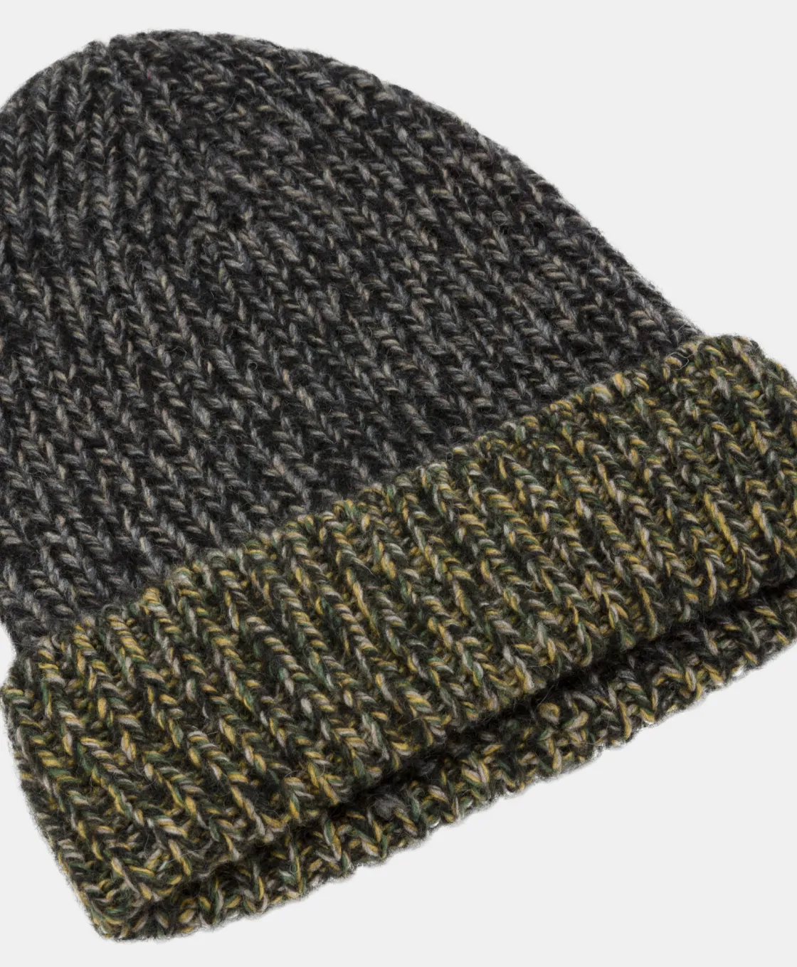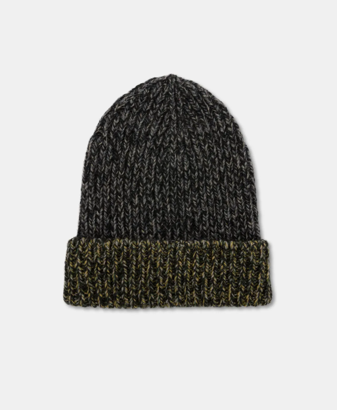Bonnet en fil de laine mélangée avec travail en blocs de couleur. Made in Italy.