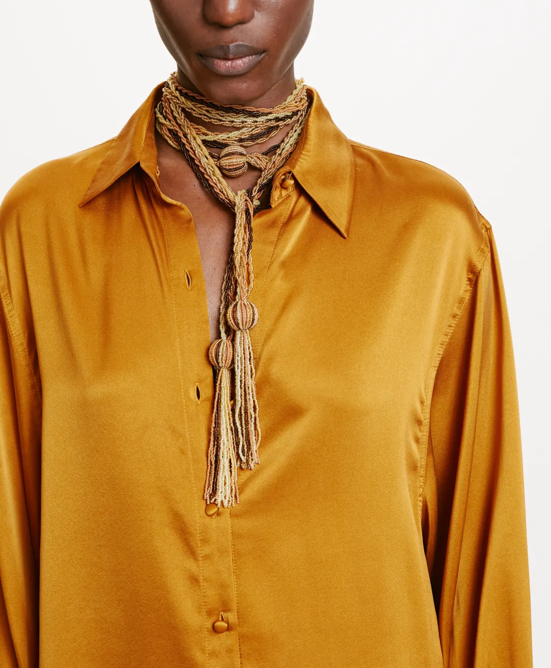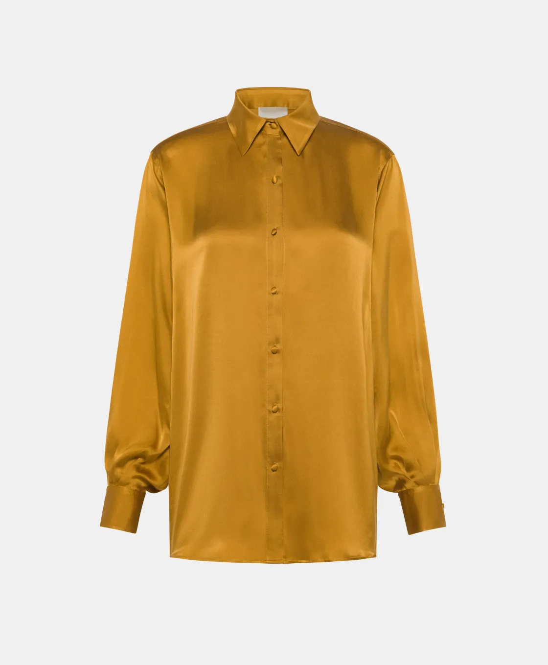 Momoni Chemises Et Blouses*CHEMISIER AKEMI EN SOIE SANDWASHED UNIE – Moutarde
