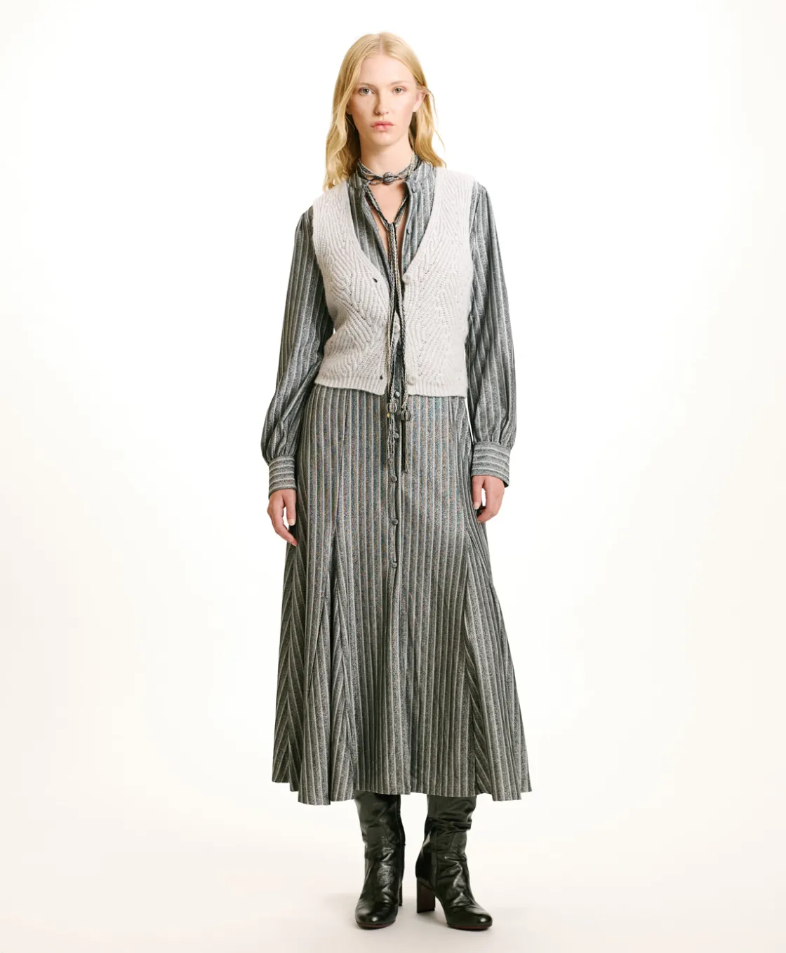 Momoni Mailles*TRICOT HIDARI POINT BRODERIE LUREX – Argent