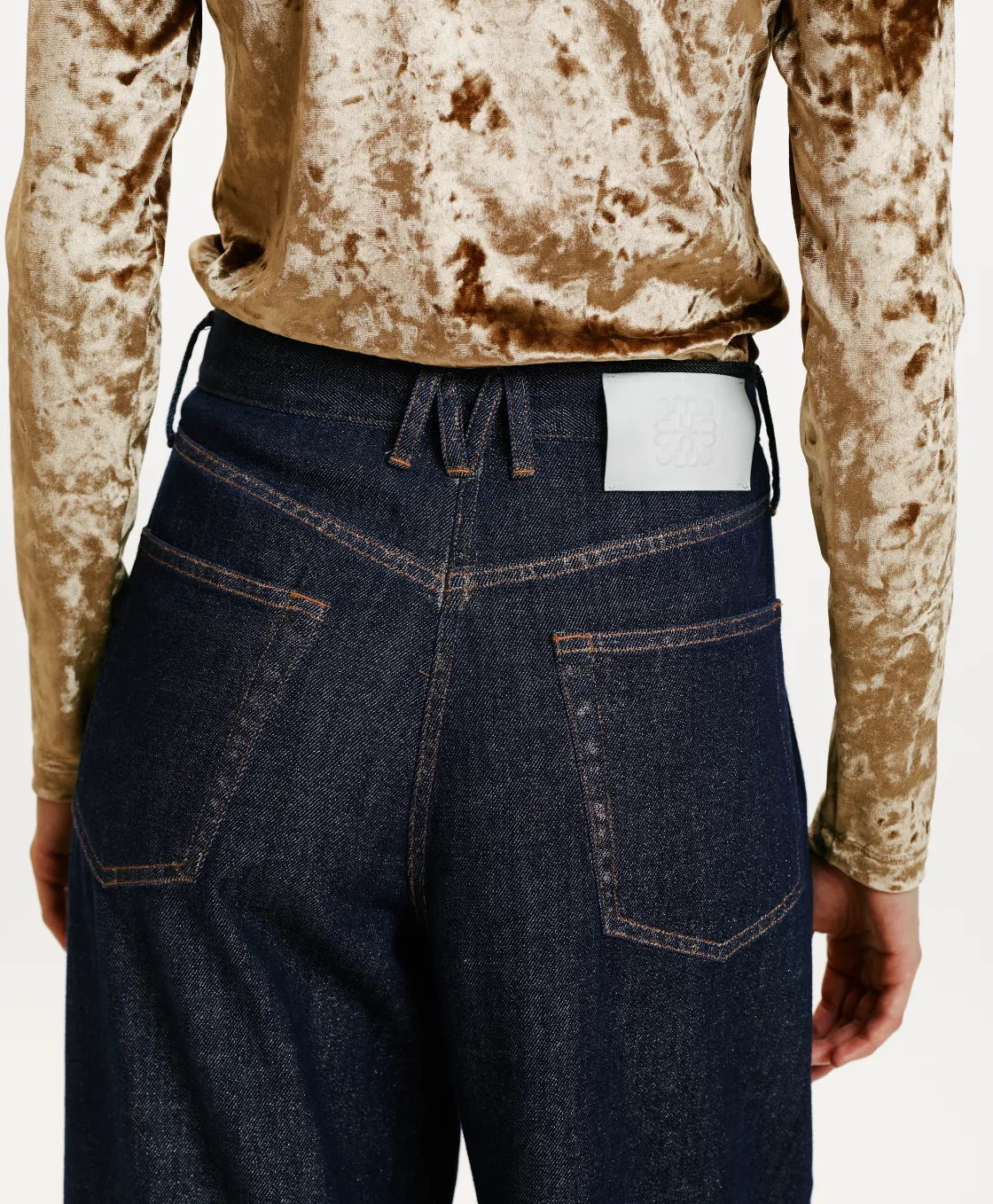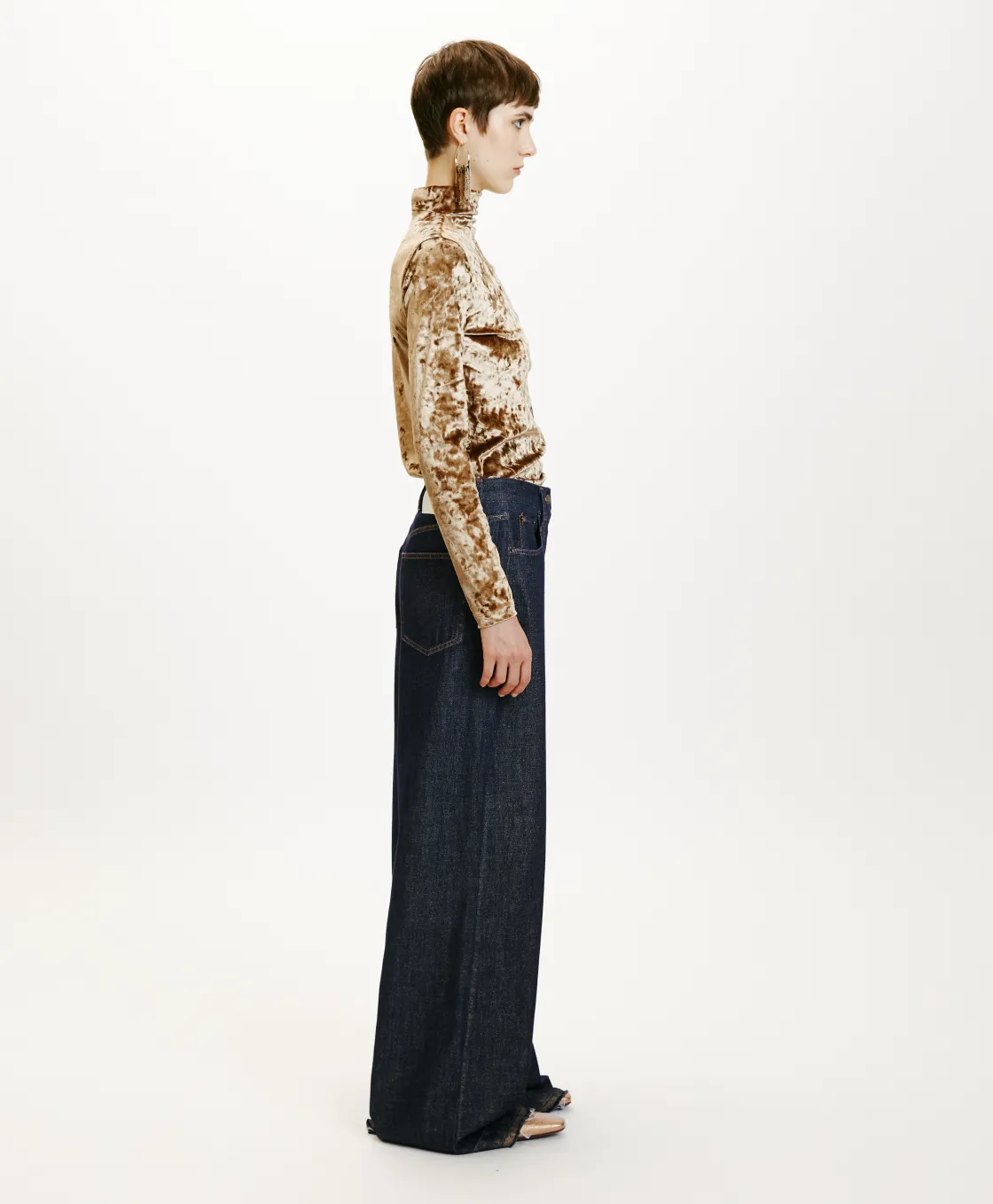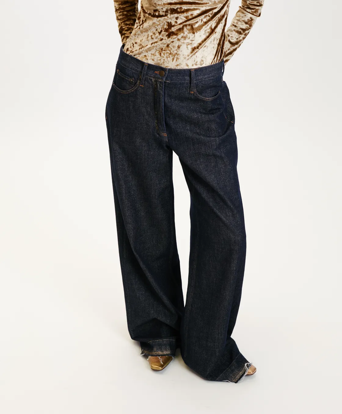 Momoni Pantalons*PANTALON AOKI EN DENIM LAMINÉ – Bleu/Or