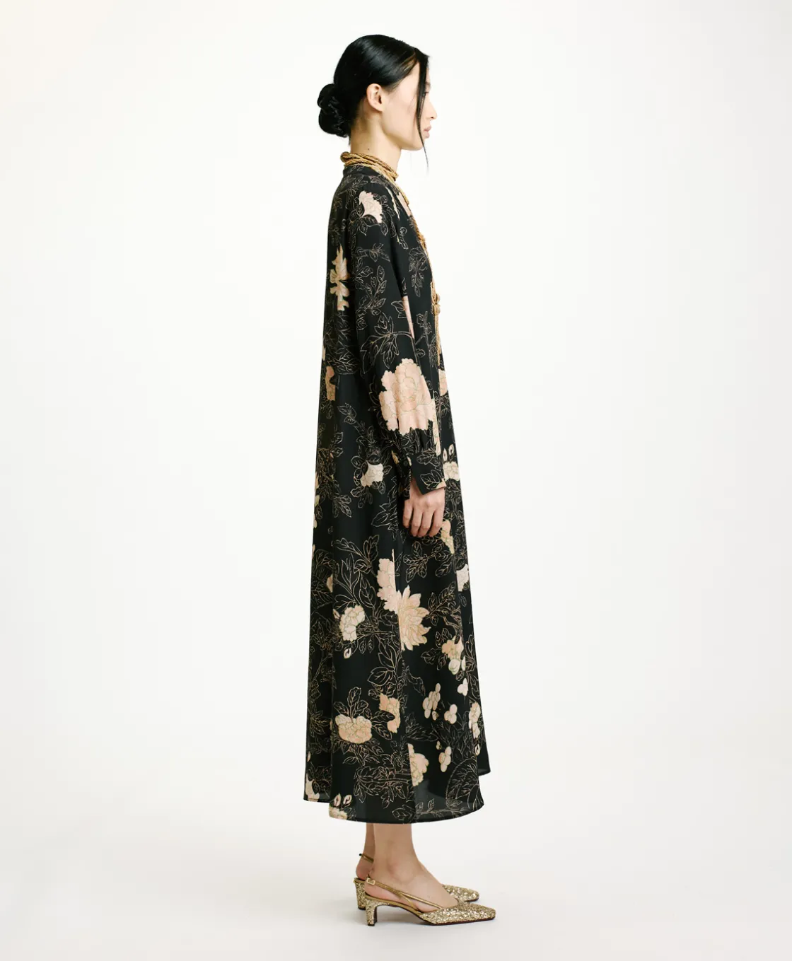 Momoni Robes*ROBE NAO EN CRÊPE DE CHINE IMPRIMÉ – NOIR/ROSE POUDRÉ Noir/RosePoudré