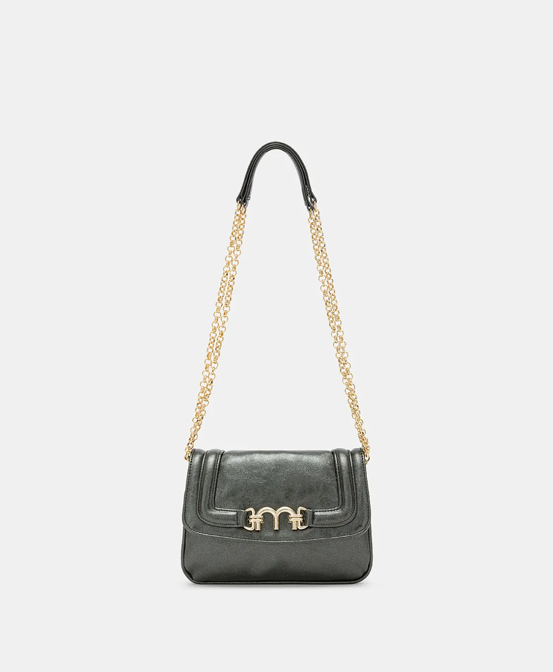 Mimì, la « petite » de la ligne Flore, est une pochette raffinée présentée dans une nouvelle version avec deux soufflets en faux cuir laminé. Rabat avec mors Momonì doré distinctif, bandoulière réglable en chaîne avec épaulière, poches intérieures zippées et boutonnées. Made in Italy.